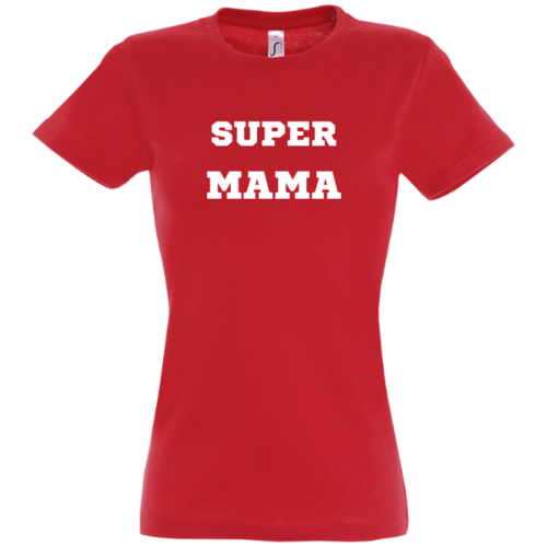 Marškinėliai moterims su užrašu: SUPER MAMA, raudoni