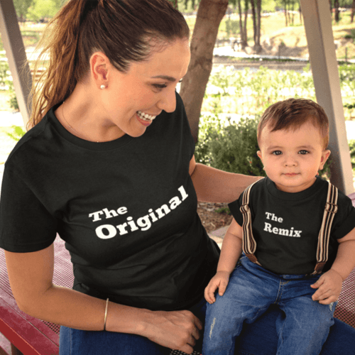 Marškinėlių komplektas mamai ir vaikui " The original ir The remix " juodi