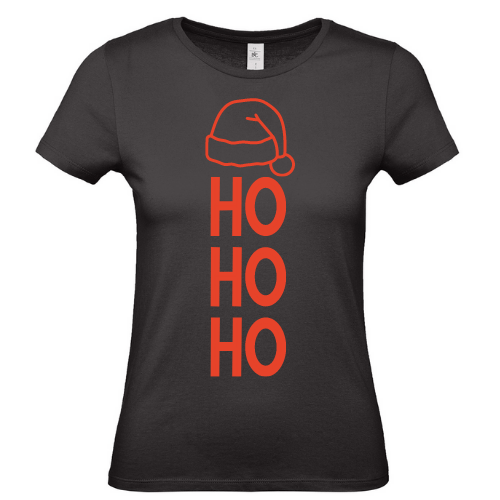 Moteriški Kalėdiniai marÅ¡kinÄliaiu užrašu HOHOHO. Puiki dovana artėjančių Kalėdų proga. Galite pasirinkti marškinėlių modelį, spalvą ir užrašo spalvą.